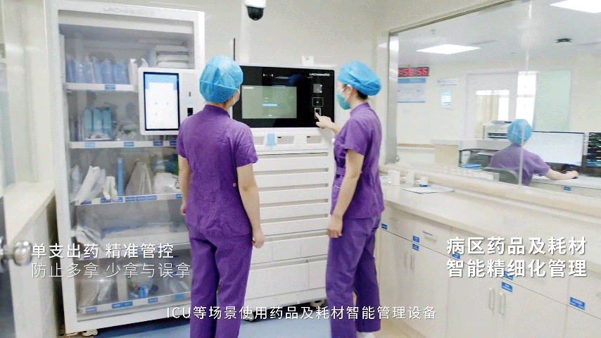 构建药耗一体化的管理模式,通过部署智能特殊基于智慧药事管理平台和智慧病房交互平台,通过在病区部署智能药品管控柜、智能抢救车、智能耗材柜等设备,实现常规、高危、麻精药品的精细化安全管理,实现药品耗材从二级库到最终患者床旁使用全流程闭环可追溯,确保临床用药安全。